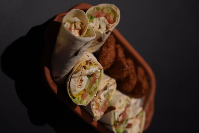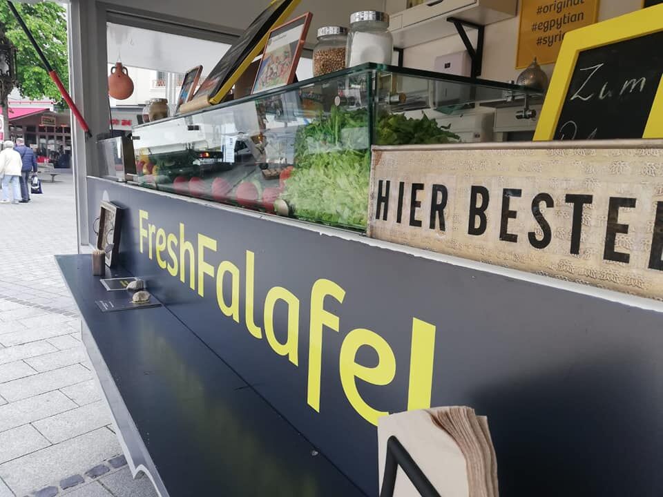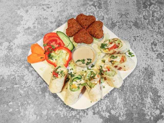 vegetarische, arabische Falafel, die zusammen mit ausgewähltem Gemüse in Brot eingewickelt und auf der Hand gegessen werden Falafel gehört als Nahrungsprodukt zu allen Teilen Nahen Ostens. Hauptbestandteil ist die „goldene Kichererbse“, die als Falafel, mit pürierten Bohnen und frischen Kräutern und Gewürzen zu Bällchen geformt und frittiert werden. Unerlässlich ist nehmen der Kichererbse, Petersilie und Sesam.InPalästina, Libanon, Syrien, Ägypten und anderen arabischen Ländern gilt Falafel, als Nationalgericht. Es ist einfach und schnell zuzubereiten, nahrhaft, reich an Vitaminen und Eiweiß und das völlig ohne tierische Produkte. Hinzukommend ist, dass die Grundzutaten günstig und gerade in ländlichen Regionen leicht zu beschaffen sind. In Deutschland gilt der Falafel, als das „gesunde Fastfood“ und steht auf der Beliebtheitsliste weit oben. Aufgrund der Nahrhaftigkeit werden Falafel sogar für Diäten empfohlen. Jedes arabische Land bedient sich einer anderen besonderen Rezeptur, sodass Falafel in der arabischen Welt gerne für einen länderübergreifenden, aber doch verbindenden Smalltalk genutzt wird, mit dem Ziel das Gegenüber von seinem Rezept zu überzeugen. In der Regel ohne Erfolg, denn Falafel, welche in Ägypten z.B. Tamiaa genannt und mit roten Bohnen zubereitet wird, ist mehr als ein Lebensmittel, es beschreibt ein ganzes Heimatgefühl, das nicht nur auf der Zunge zergeht, sondern auch schon beim „darüber sprechen“ bei den meisten Menschen Positivgefühle auslöst.